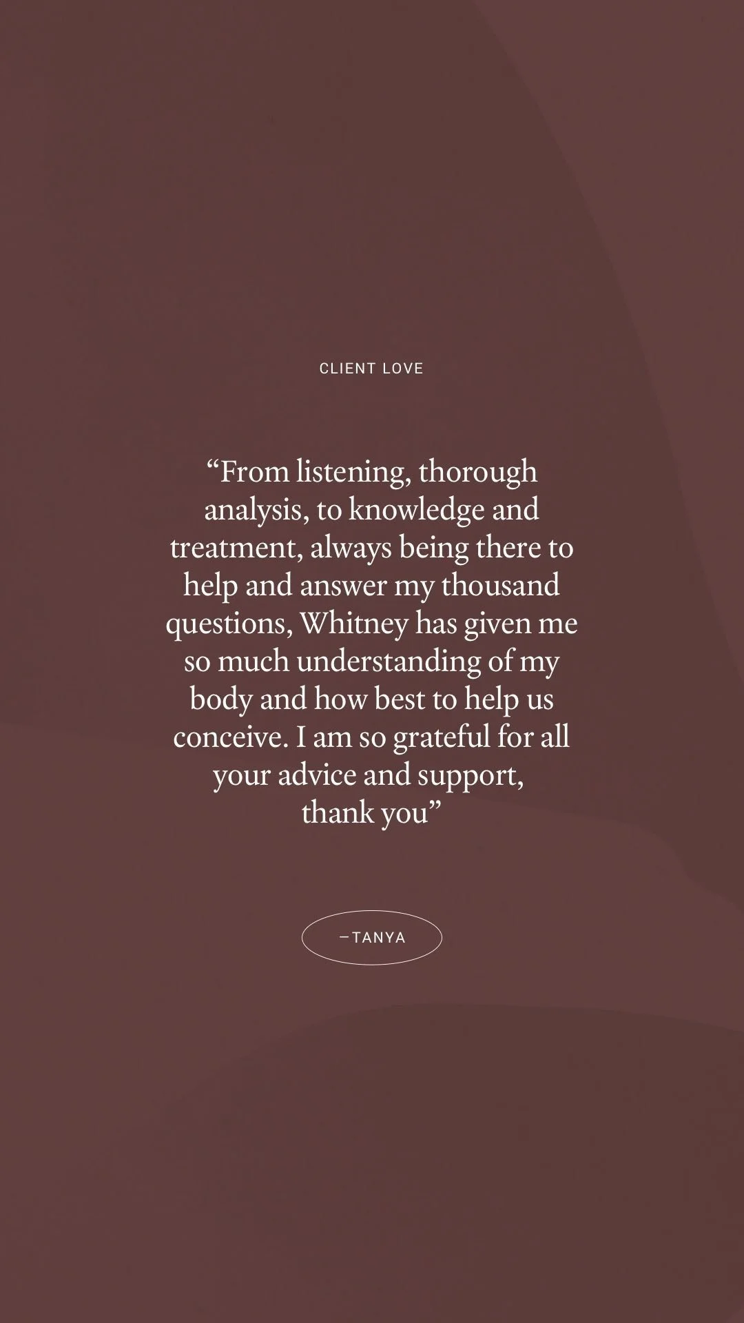 Infertility is a word that is extremely loaded and given as a label to so many couples unnecessarily. Many are given this diagnosis without thorough and holistic investigations. Conception can be a lot tougher for some, but with my holistic approach I ensure my clients feel seen and heard and most importantly, have the courage and confidence to enable, support and nurture a healthy pregnancy.